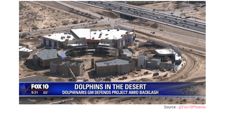 Malgré cela, comme le rapporte le site TheDodo, l’Arizona s’apprête à ouvrir un delphinarium (un aquarium géant pour dauphins et orques) qui tiendra lieu de parc d’attractions. L’ouverture du parc est prévue pour la fin de l’été 2016, et 12 dauphins y seront accueillis et exploités pour des activités diverses :