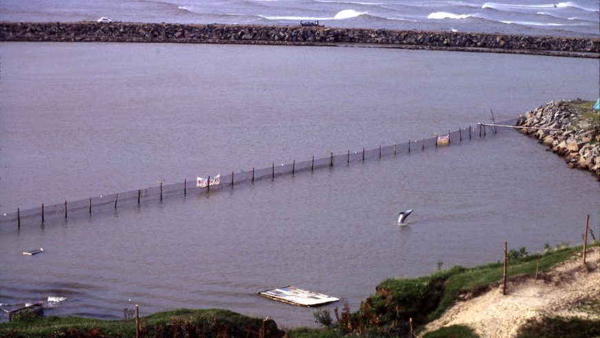 Nous jetons toujours des poissons vivants au centre de l’enclos de manière à ce que les dauphins aient plus de chance d’en attraper avant qu’ils ne s’échappent par la clôture.